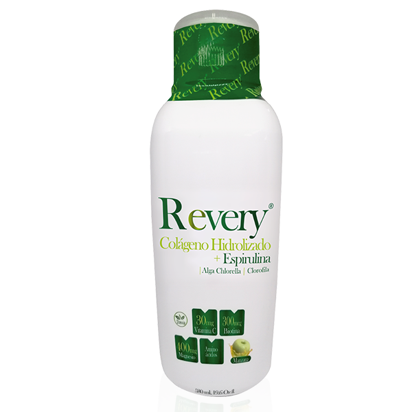 El colágeno hidrolizado es el complemento ideal para tu nutrición, ya que este ha sido procesado para romper las moléculas grandes en fragmentos, de tal manera que la absorción por el cuerpo sea la adecuada. Revery es una bebida elaborada con péptidos de colágeno e ingredientes especiales como espirulina, magnesio, biotina y clorofila; con adición de vitaminas y minerales, ingredientes que aportan extraordinarios beneficios para tu cuerpo, como: